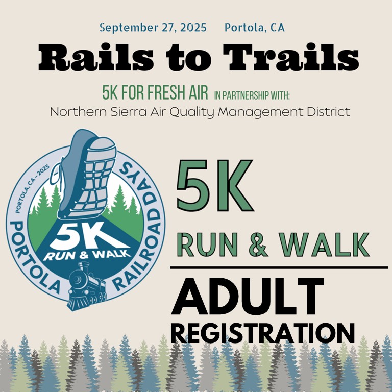 Join us for the Rails to Trails 5K Run & Walk โ a celebration of clean air, community, and healthy living in beautiful Portola, CA! Held on Saturday, September 27, 2025, this event is part of Portola Railroad Days and proudly presented in partnership with the Northern Sierra Air Quality Management District.
